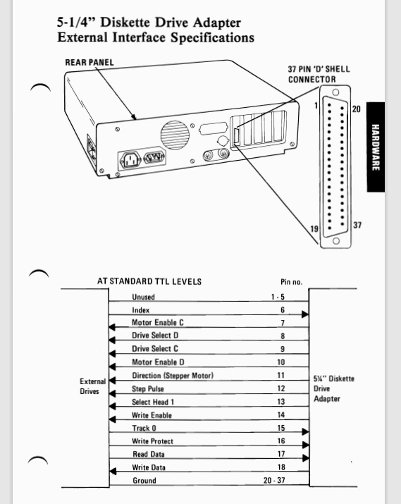 I’ve heard stories that the 37-pin external adapter can be used to read/write older 8″ disk drives, but I never saw this in person. 8″ disk drives were a bit before my time.